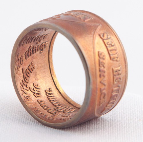 Made from AA bronze medallions, this ring will allow you to keep your recovery close at hand. With inscriptions like “To thine own self be true", “Unity", “Service", “Recovery" “Freedom", “Goodwill", and the serenity prayer on the inside, and the hefty weight of the bronze AA ring, you are sure to remember the blessings life has brought you because of your recovery.